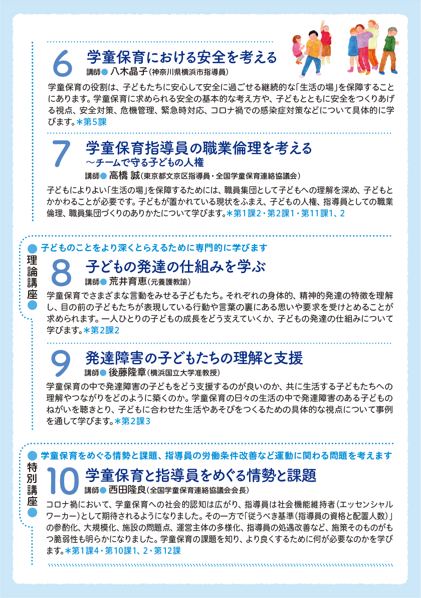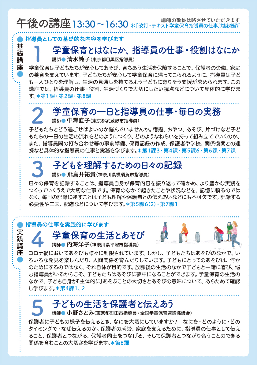 学童保育指導員学校ですが、保護者の方、これから学童保育を利用してみたい方、運営に関わる方、自治体担当者の方、議員さん、学生さんなどどなたでもご参加いただける学びの場です。